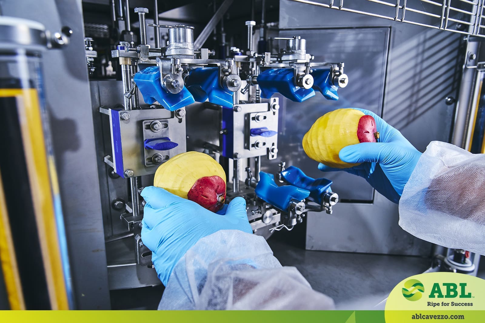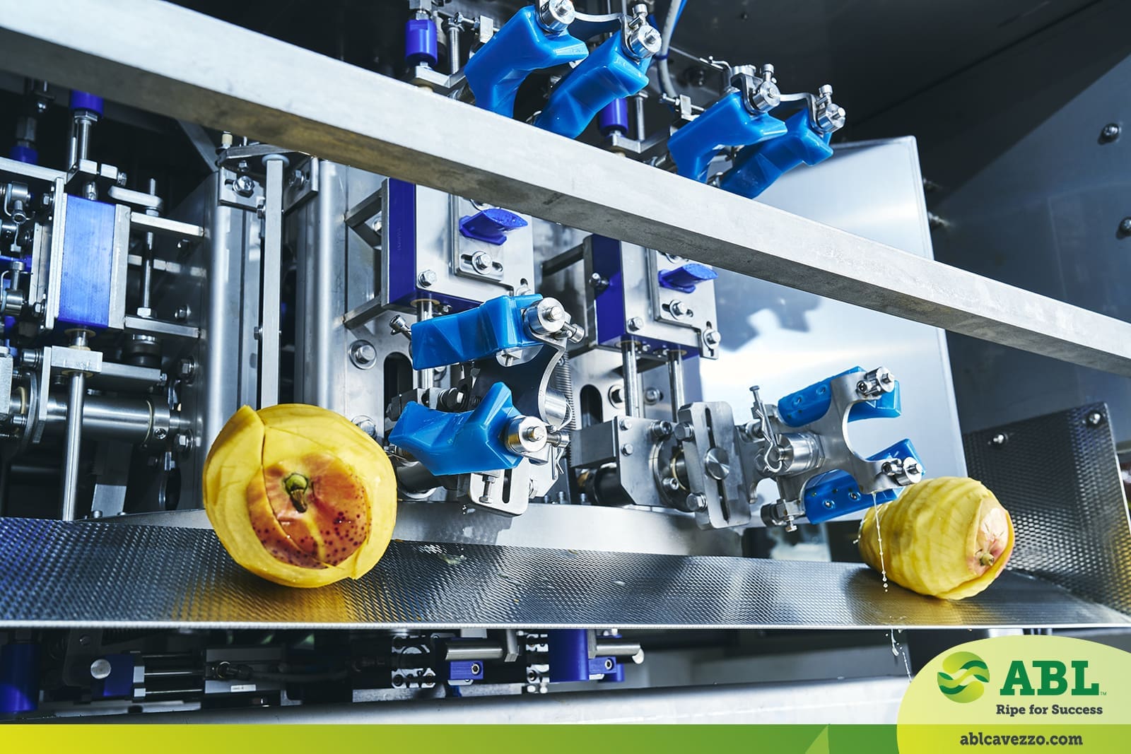 Thanks to a unique ABL patented system, specially designed knives will remove the mangoes stone following it’s natural shape, allowing to minimize waste as well as ensuring an high quality of the final product.