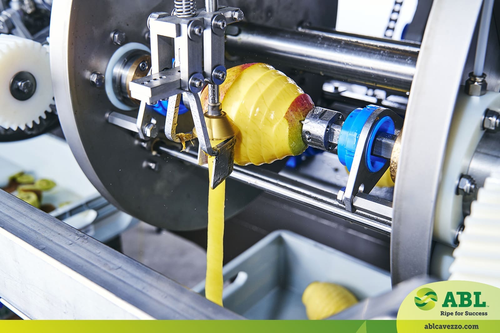 The ABL patented peeling head will gently perform the peeling following the fruit shape according to its dimension with the possibility to adjust the peeling depth , as well as the fruit rotation speed even while the machine is running.